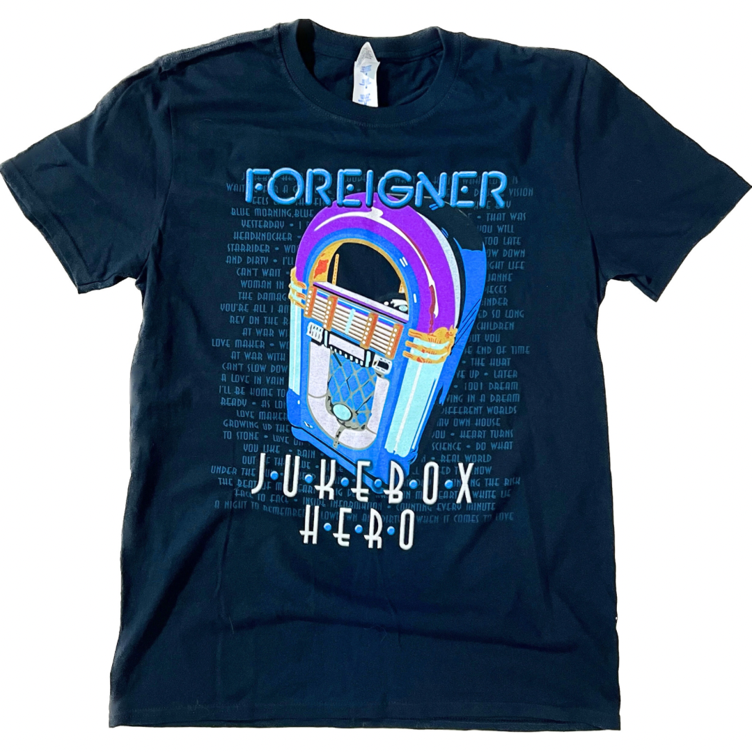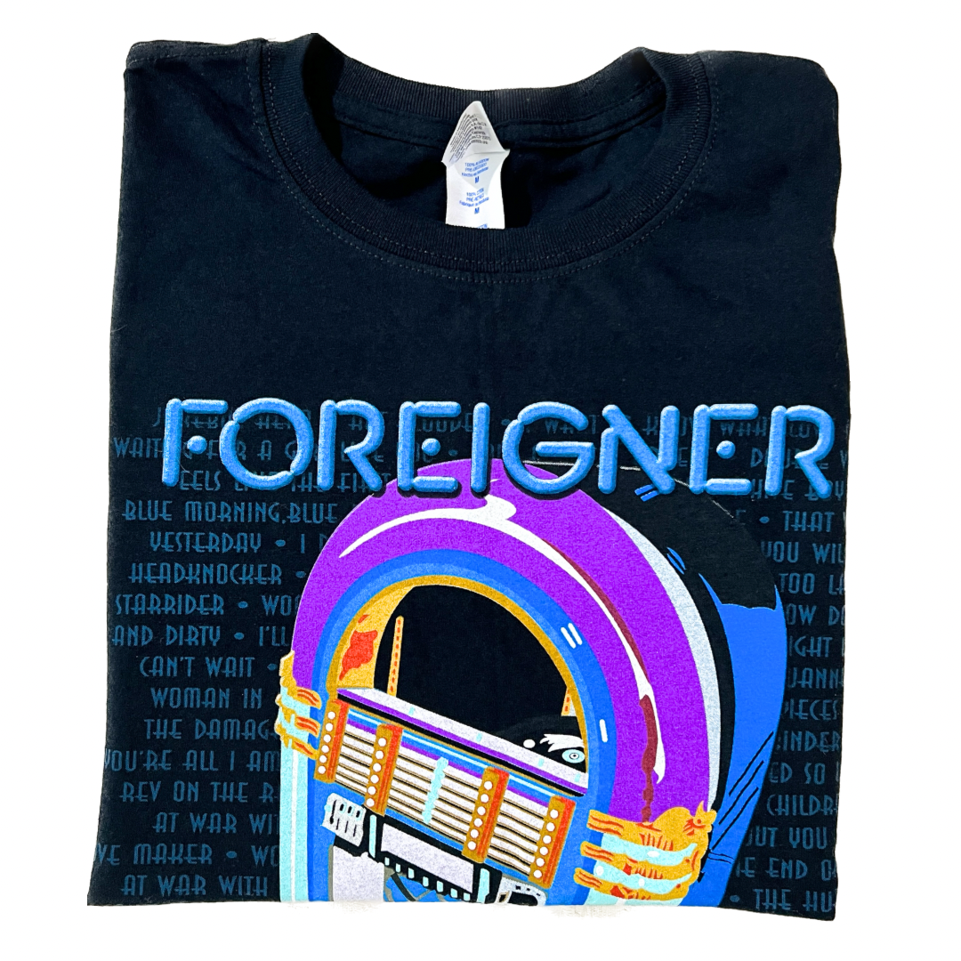 - Iconic Jukebox Graphic: The front showcases a vibrant jukebox design, paying homage to Foreigner's classic tunes.