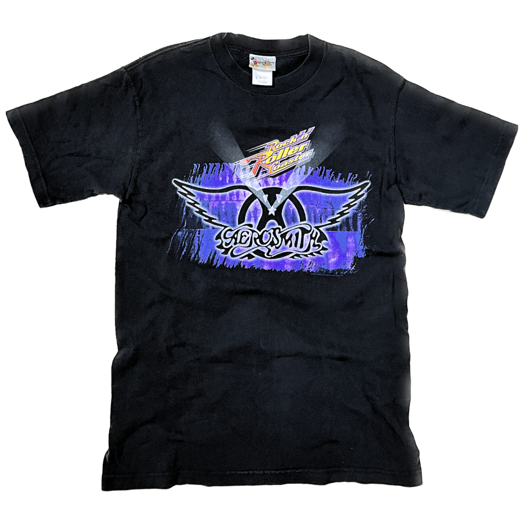 Set the stage for timeless style with our Collectible Medium Aerosmith Rock ‘n’ Roller Coaster Disney Tee. This isn’t just a t-shirt, it’s a tribute to a thrilling ride and an iconic rock band, encapsulated in one unique garment.